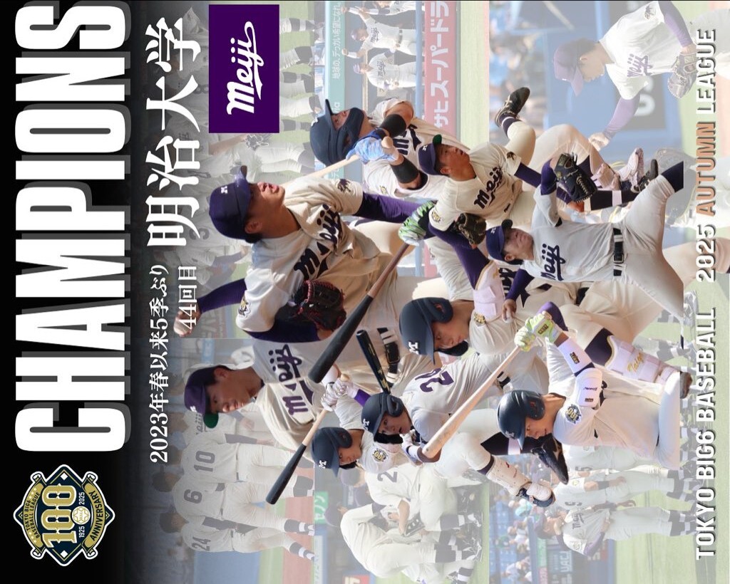 令和7年10月19日、明治大学硬式野球部が東京六大学野球秋季リーグ戦で5季ぶり44度目の優勝を果たしました。開幕から無傷の8連勝で勝ち点を4とし、最終カードの立教大学戦を残しての優勝決定となりました。優勝おめでとうございます。昨日は大川はじめも、明治大学校友会村山地域支部親睦旅行 pic.x.com/MgfIS5CQAP