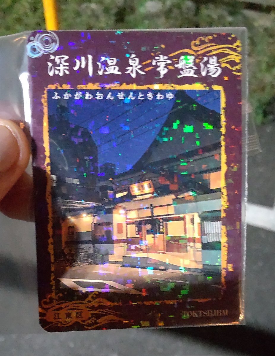 Xの画像添付機能が復活したので、久しぶりの投稿です。10月10日(銭湯の日)に、深川温泉常盤湯に行ってきました。館内も新しく施設素晴らしかったので、再訪したい案件。銭湯コレクションカードはなく、画像のキラキラカードが200円で販売していたので買ってみました。 pic.x.com/1Qtliszbyk
