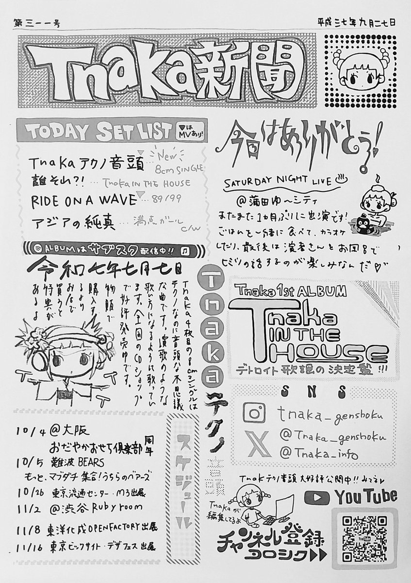 2025.9.27 なりすレコードPRESENTSキャンペーンライブ SATURDAYNIGHTLIVE @ ゆ~シティ蒲田 3F YCKホール #Tnaka新聞 第三一一号 10月10日(銭湯の日)に1歳の誕生日を迎えた黒まると湯船につかるTnakaチャン RIDE ON A WAVE良かったな~ pic.x.com/URGfLg0b68