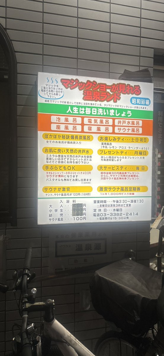 10月13日 中野区 昭和浴場 #銭湯放浪記 良いライブを見た後に汗を流したくなって途中下車。 鏡がハート型で可愛く、タイル絵も素晴らしかった! 銭湯の日のプレゼントもタオル以外も選べてありがたい。 マジック温泉らしいので、次はマジックも見てみたいなー pic.x.com/B2p45Cb0hE