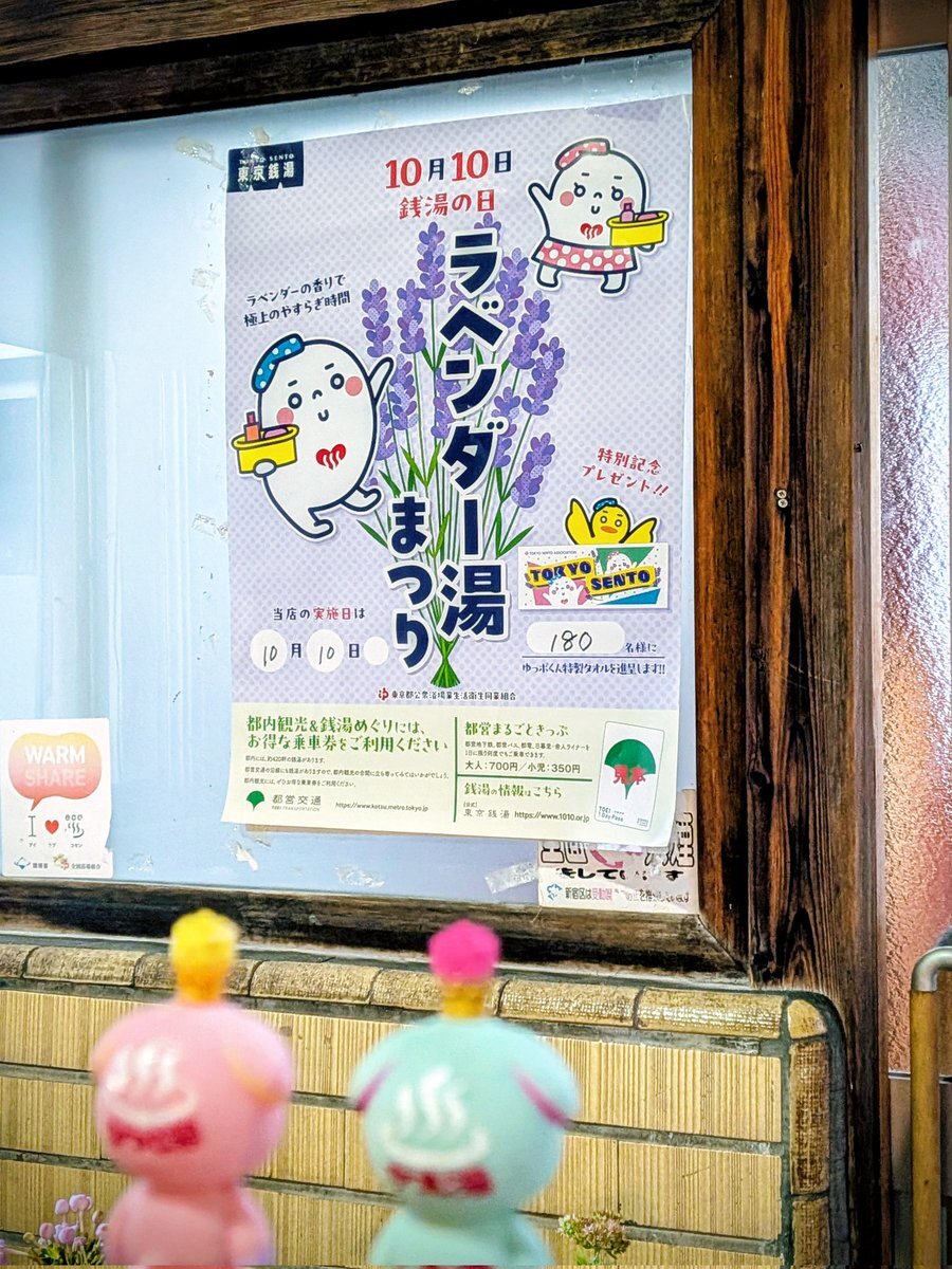 今回、銭湯の日に銭湯へ行けなかったのですが、この3連休で5箇所の銭湯に行き、4箇所でラベンダー湯🪻を堪能。更に3箇所でゆっポくんタオルをゲット。昨年4月から銭湯に行き始めたものの去年は存在すら知らず…今年から銭湯の日というものを知れたので、銭湯巡りがすげー楽しかったです。 pic.x.com/lHpvPsigTm