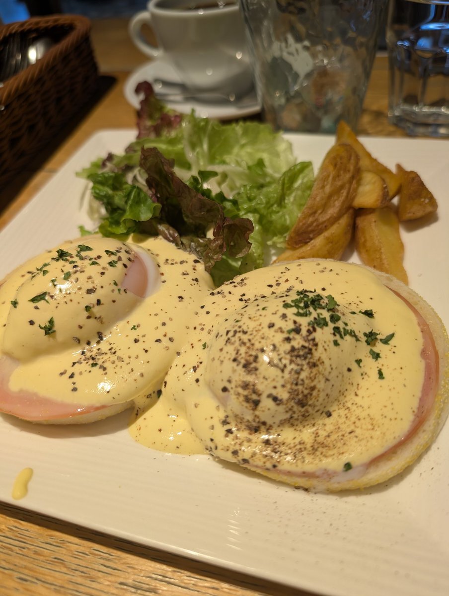 名古屋コーチンのエッグベネディクト。 硬い要素ないのに、負傷。顎関節症、難儀すぎる。 pic.x.com/vk824vNVIF