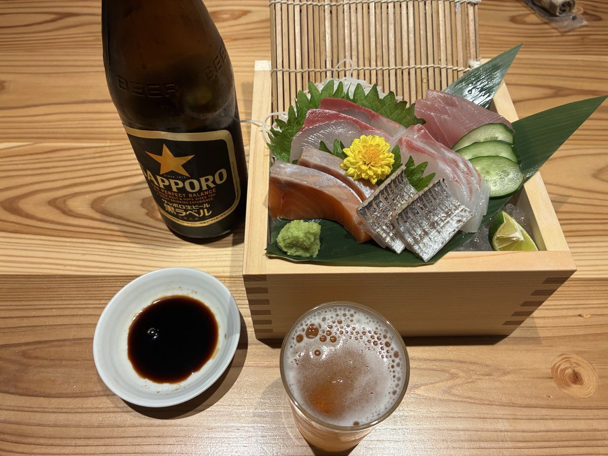 花火大会の前に最近出来た 淡路島の海鮮炉端のお店へ👴 ①本日のお刺身盛り合わせ 黒ラベル瓶ビール ②サザエの壺焼き ③初!馬レバー刺し🐴 ④金目鯛の塩焼き🐟 馬レバー刺しに感動🥰 もう一皿食べたいけど1500円かぁ...😂 カンパーイ✨🍻✨ pic.x.com/kIkH3GS2Ca
