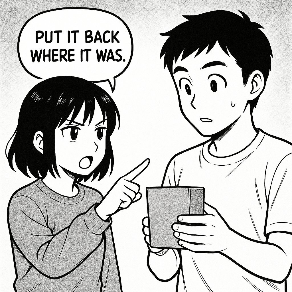 1/3【今日の3秒英会話|Day 6】 元の所に戻しておいて Put it back where it was. ●解説 Put it back = それを戻す where it was = それがあった場所に pic.x.com/75IFf2AUP8