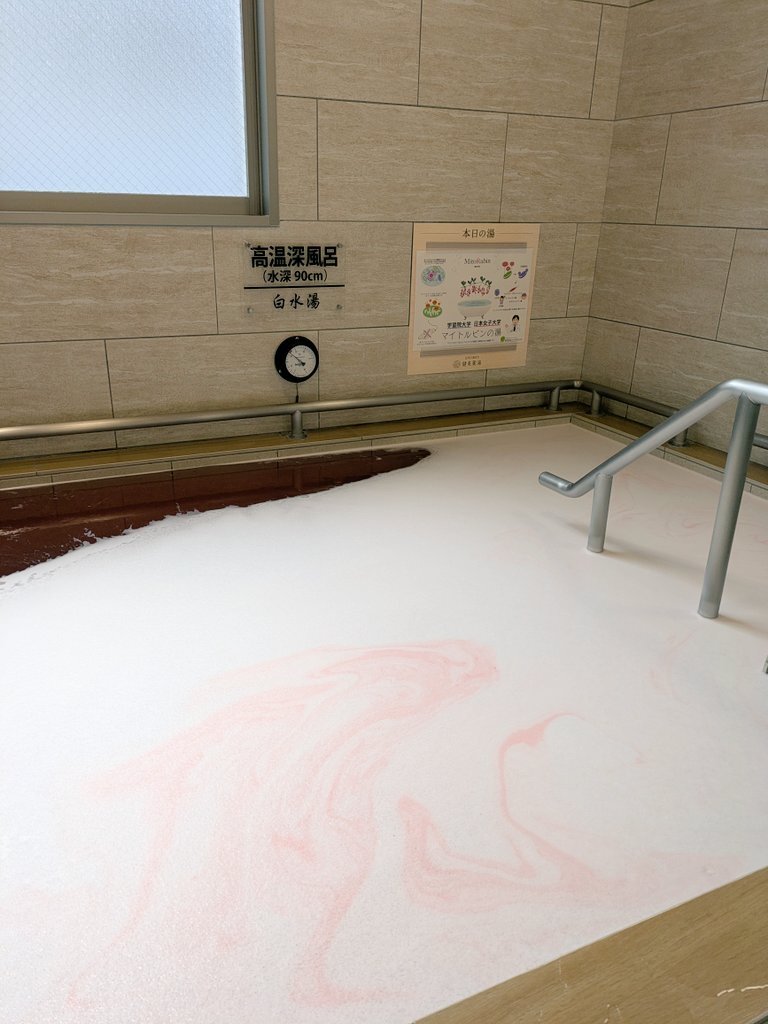 おはようございます☀ 白水湯です 本日は【マイトルビンの湯】 ミトコンドリア研究で発見されたマイトルビンは、若返りの要素が詰まっているそうです🔬🦠 入浴剤を入れた時にマーブル模様が出て幸せな気持ちになりました✨ お湯の色はルビーです 本日もお待ちしております♨️ スタッフちば pic.x.com/w9WeQtbauP