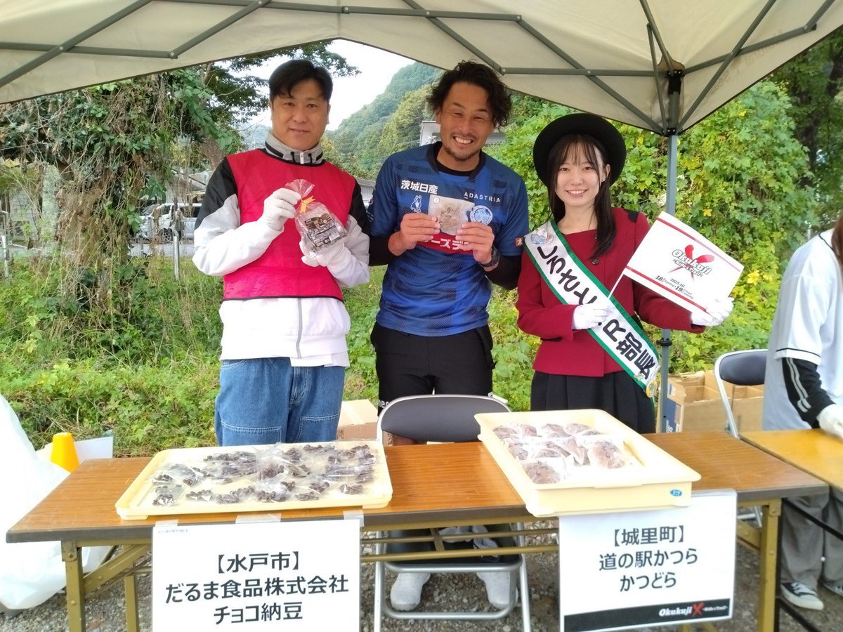 #本間幸司 CRO Okukuji「X」への挑戦🚴‍♂️💨 奥久慈里山ヒルクライムルート🔥速報📣 第一エイドステーション『道の駅かつら』では かつどら、チョコ納豆などでエネルギーチャージ💪 🟦皆さまに見送られて、出発です‼️ 🔻応援予定の皆さまへのご案内🔻 mito-hollyhock.net/news/p=46761/ @koji_1_homma @okukuji_x x.com/hollyhock_staf…