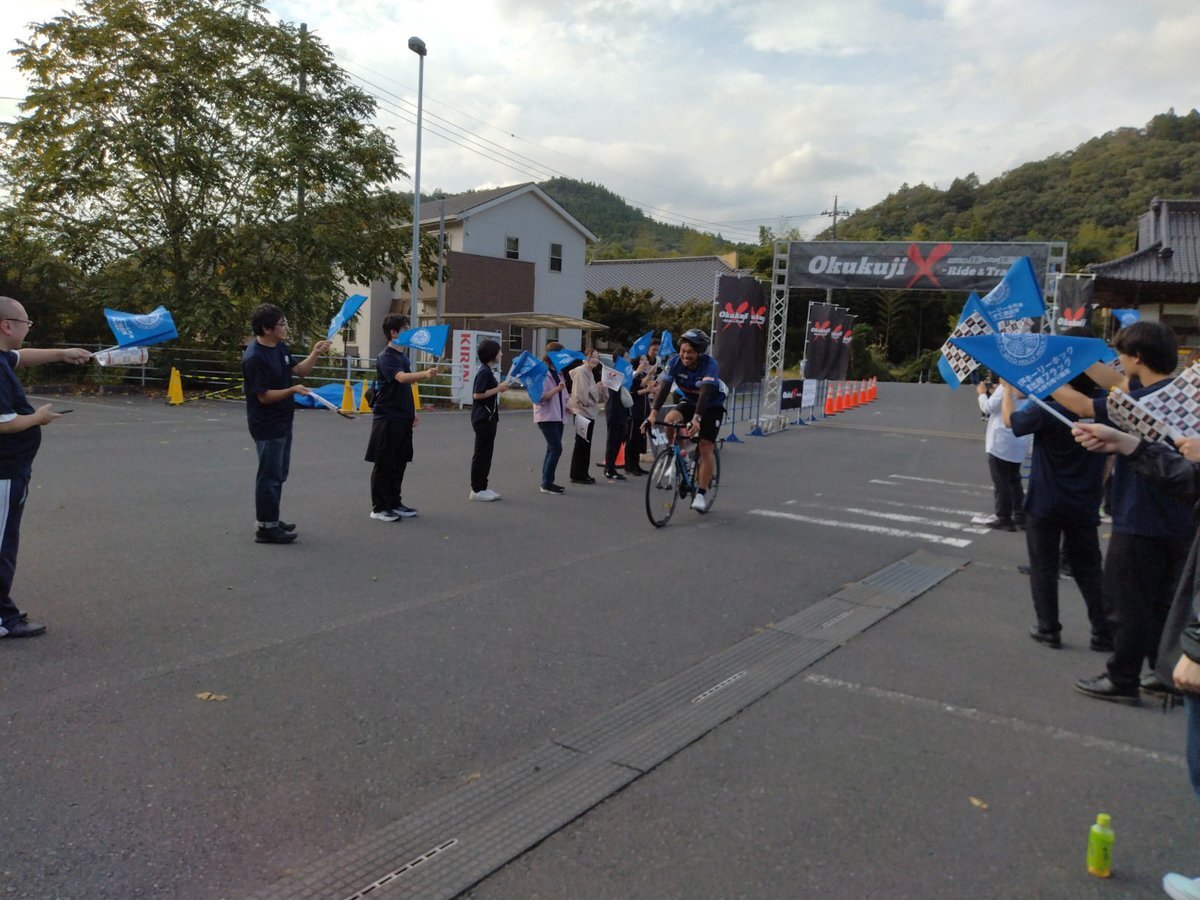#本間幸司 CRO Okukuji「X」への挑戦🚴‍♂️💨 奥久慈里山ヒルクライムルート🔥速報📣 🟦ブルーミングフラッグで応援を受けながら✨ まずは第一エイドステーション『道の駅かつら』に到着! 🔻応援予定の皆さまへのご案内🔻 mito-hollyhock.net/news/p=46761/ @koji_1_homma @okukuji_x #GOJ1KOJI #奥久慈クロス pic.x.com/cl0bcBLZMS x.com/hollyhock_staf…