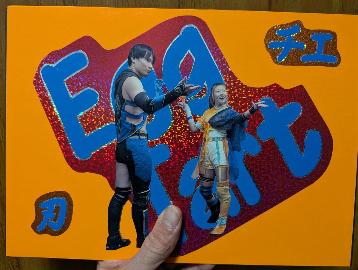 25.01.12 ChocoPro421 Egg Tartボードの元写真はこの日のもの 対戦相手はWさやかというチエさんのパートナーだらけ 新納さんが沙也加さんからサブミッションで勝利し、Egg Tartの強さを見せつけた試合 エンディングではこんなことも #EggTartベルト戴冠 へ 残り11日 #ChocoPro #小石川チエ 選手 pic.x.com/4BHg4r810E
