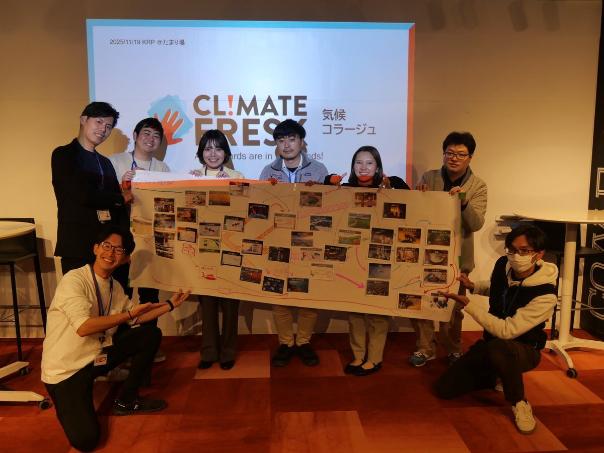 本日11/19(水)、#KRPたまり場 ではカード×対話で気候変動の今を学ぶワークショップ「Climate Fresk」を開催しました。専用の気候変動カードと模造紙を使って対話しながら楽しく、科学的に気候変動を学べ、明日からの行動をちょっと変えるきっかけになりました! pic.x.com/UghmpSMSBL