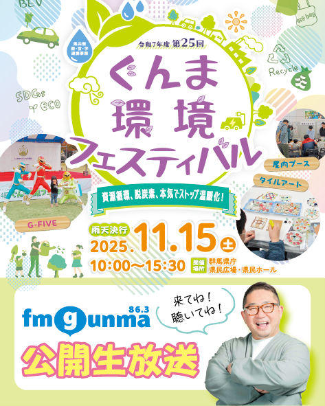 \ぐんま環境フェスティバル/ 本日10時から群馬県庁で開催します🥳 EV・FCV車展示や環境配慮商品の販売のほか、fm gunmaの公開生放送がありますよ😉 #内藤聡 さんが私たちのできる身近な取組を楽しく放送しますのでお楽しみに🤣 県HP⬇️ pref.gunma.jp/site/eco/72864… #拡散希望 #参加者希望 pic.x.com/F12TEd3U4X