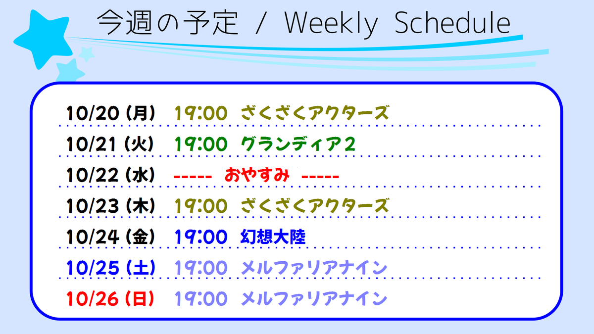 今週の配信予定です 金曜日にFEZやった方が思う存分できるかなと思い 配信ローテを変えました #ざくざくアクターズ #グランディア2 #FEZ #パワプロ pic.x.com/rYOe1CZw2C
