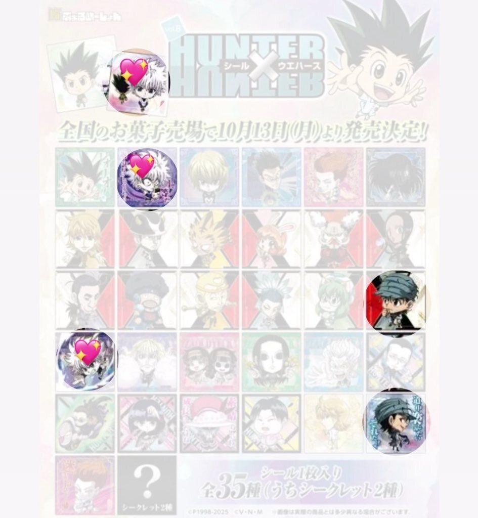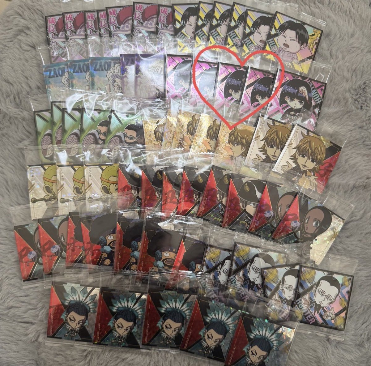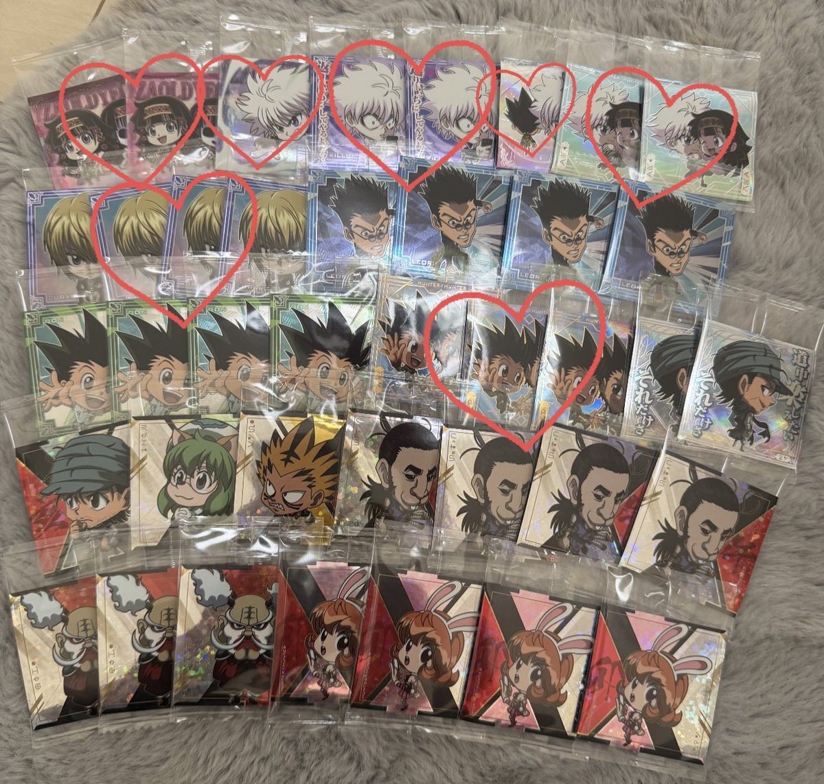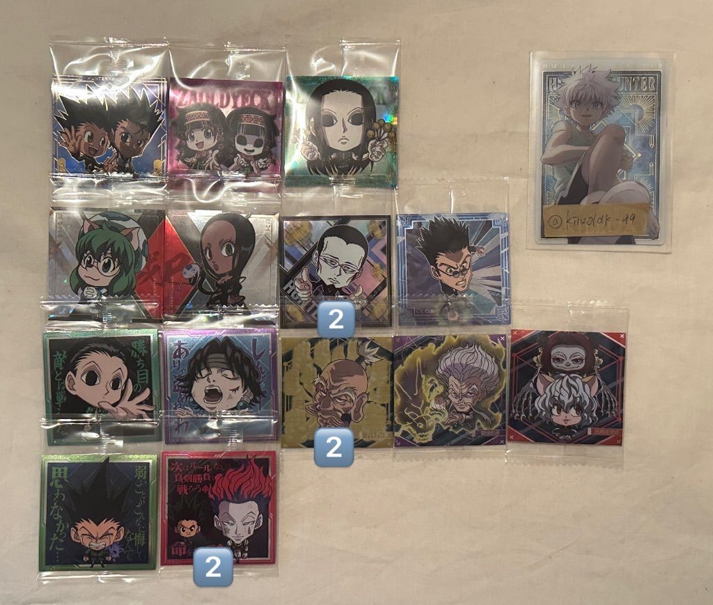 交換 HUNTER × HUNTER ハンターハンター ウエハース (追加分) 譲 画像1.2 求 画像3 💖以外は各1 比率違い〇 画像1上段は画像2含むお取引優先🙆🏻♀️ 都内お手渡し or 郵送 2点〜希望 (💖は1点から検討致します❕) お気軽にお声掛けください❕ pic.x.com/2I1tGN40nD
