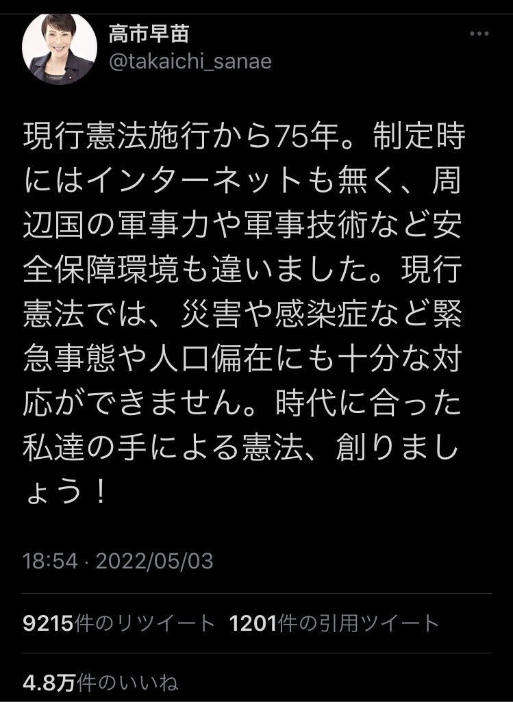 高市早苗が推す緊急事態条項は、国民の自由も人権も財産も全て奪い去るものです。 改憲支持者は、それを理解して賛同してるんでしょうね? #緊急事態条項反対 #改憲発議絶対させるな #高市早苗の支持者は支持する具体的理由を述べよ @takaichi_sanae