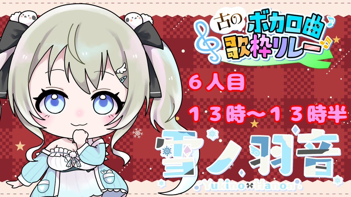 【お知らせ】 ♡12月13日の10時から15時30分まで♡ 可愛い女の子たちの歌枠リレーが来ます🤍 はのんは6番目の13時〜13時半です🌟 #古のボカロ曲歌枠リレー でポストしたり このポストをRPなどで応援よろしくね🫶💓 #拡散希望