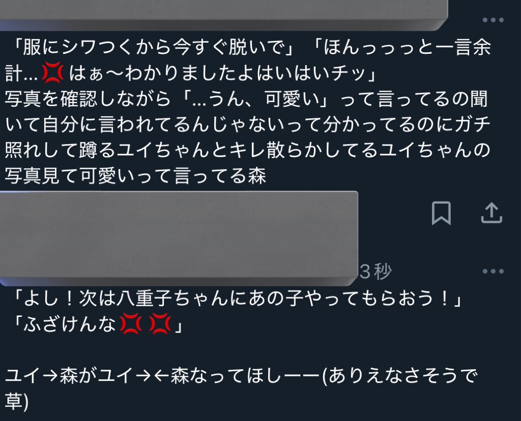 森ユイ(表記分からなかったので暫定コレ) マジで私にしか需要がないCP。まじでこうなる可能性が1ミリもないのでいっそ清々しい。殺してください。でも生意気な子ガキが好きなんです… pic.x.com/NfwQFC5PCG