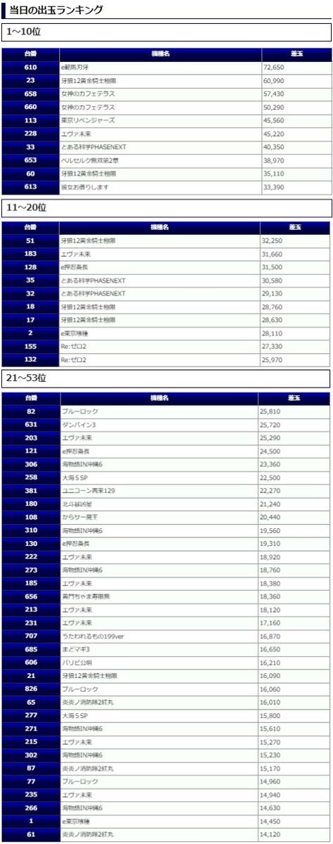10月11日 ラッキープラザ名古屋西インター七宝店 📝クロロえげつない愛知決戦P【EV】結果 並び総数:158人 【✍️分析】 e範馬刃牙の7万発overを筆頭に、牙狼12・女神のカフェテラス・エヴァ未来と4万発overが続出👏 エヴァ未来は出玉上位に手広くランクインし、盛り上がりをみせる🙆 pic.x.com/zuVhpH6nOF x.com/the_yohbun/sta…