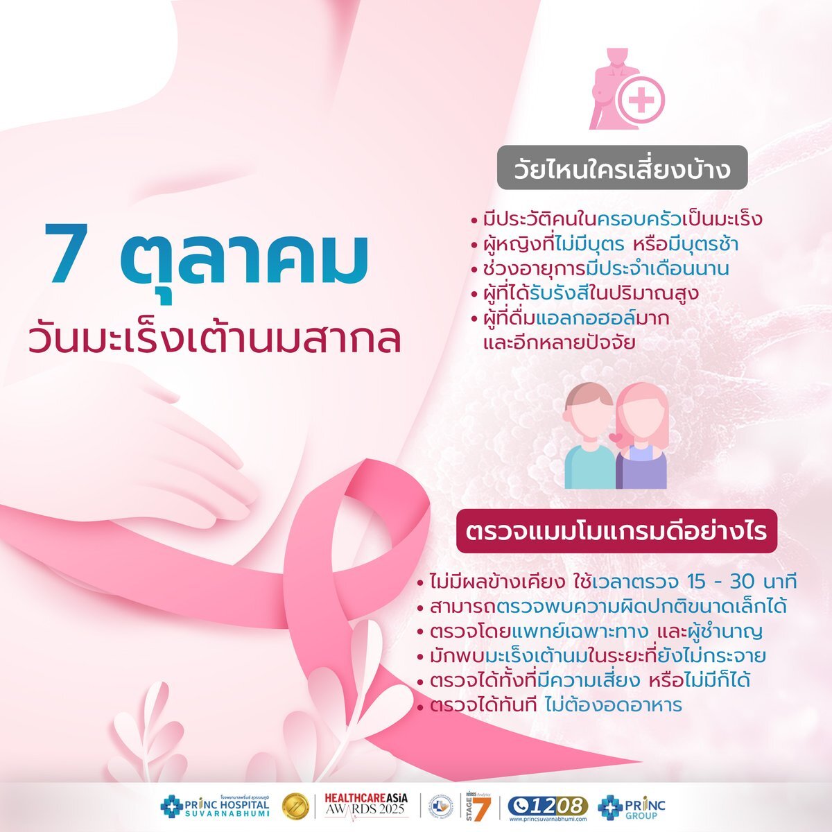 7 ตุลาคม วันรณรงค์ต้านมะเร็งเต้านม (Breast Cancer Awareness Day) 🎀 ในปี 2020 หญิงไทยมากกว่า 22,158 คน ได้รับการวินิจฉัยว่าเป็นมะเร็งเต้านม แม้ตัวเลขนั้นจะไม่ใช่ปีปัจจุบัน แต่ก็เตือนให้เราไม่ประมาท #BreastCancerAwarenessDay #มะเร็งเต้านม #PRINCgroup #เครือพริ้นซ์