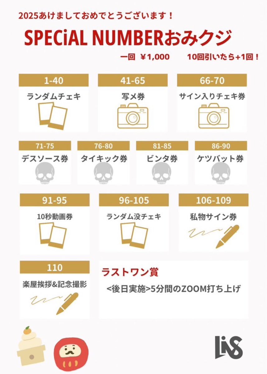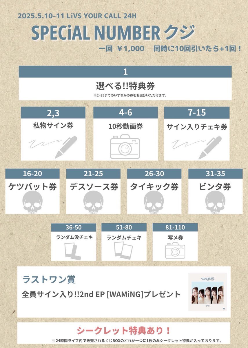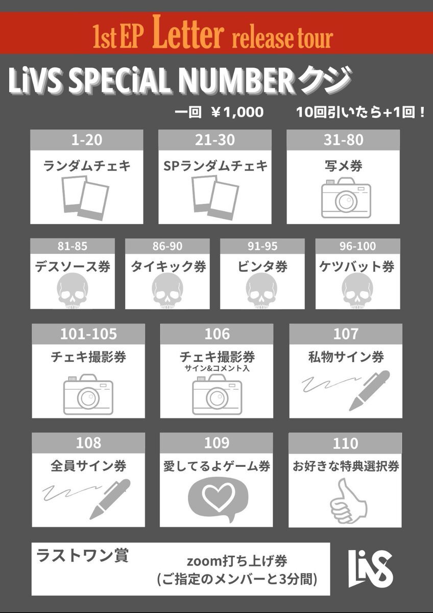 今まで、色々なクジ企画をしていたんだー🎯 引いたことが無いから楽しみだけど、110本中20本が罰ゲームなので、かなりデンジャラスだな😨 メンバーとの接触が無いランダムチェキとデスソースがハズレ枠なのかな? #LiVS pic.x.com/DNODJcSXBu