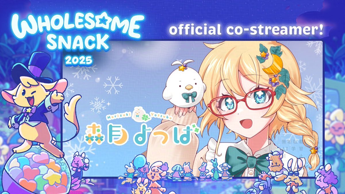 【配信案内】 #428stream Twitch twitch.tv/morizuki_yotsu… 📆12/10 4:45~(JST) ※本放送は5:00~ 公認ストリーマーとして、『Wholesome Snack 2025』(@_wholesomegames )の公認ミラー配信をさせていただきます🍀 今回は20本以上の独占・初公開の発表があるとか…! ぜひ一緒に楽しみましょう✨ pic.x.com/7yVM8SSNmk