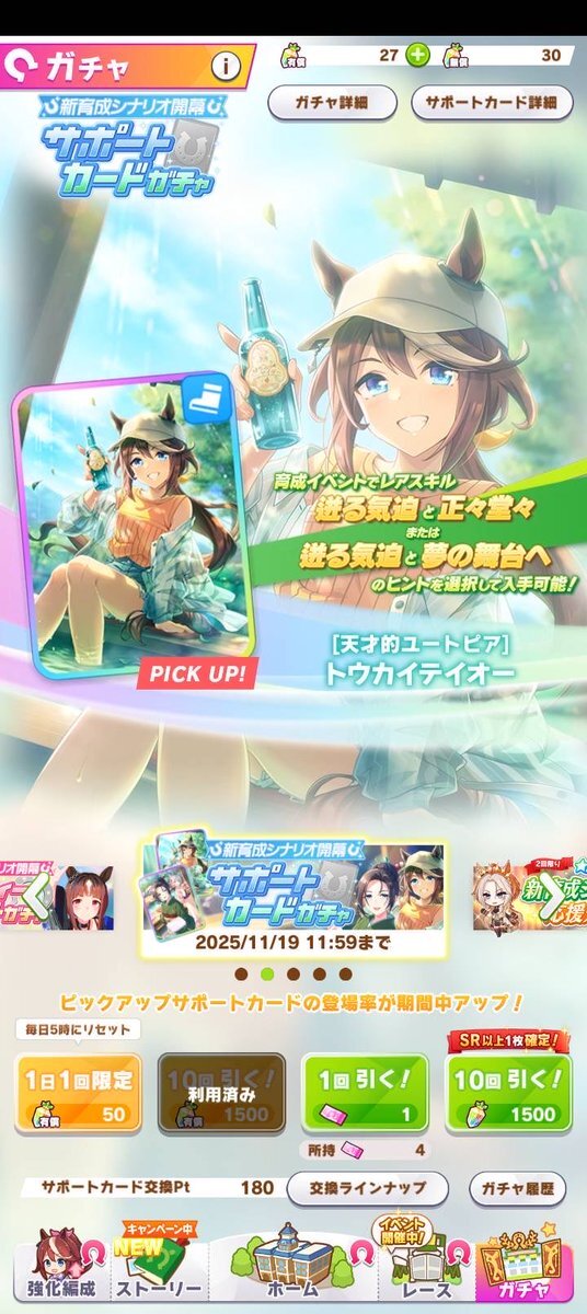 ポケマスくん天井が分かりにくいんだよな…… 11連(3000石)→33Pt 単発(300石)→3Pt 有償単発(有償100石)→1Pt 300〜500Pt(ガチャによって変わる)で天井出来て、そのガチャから排出される好きなキャラと交換できる