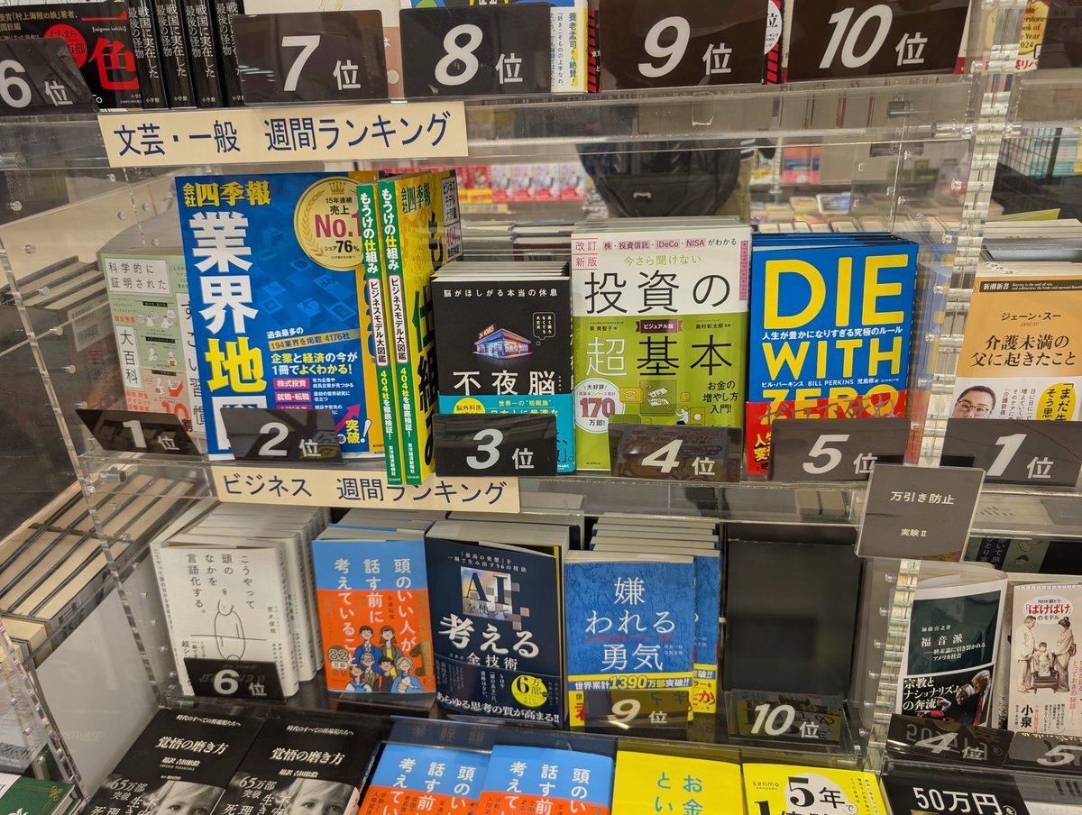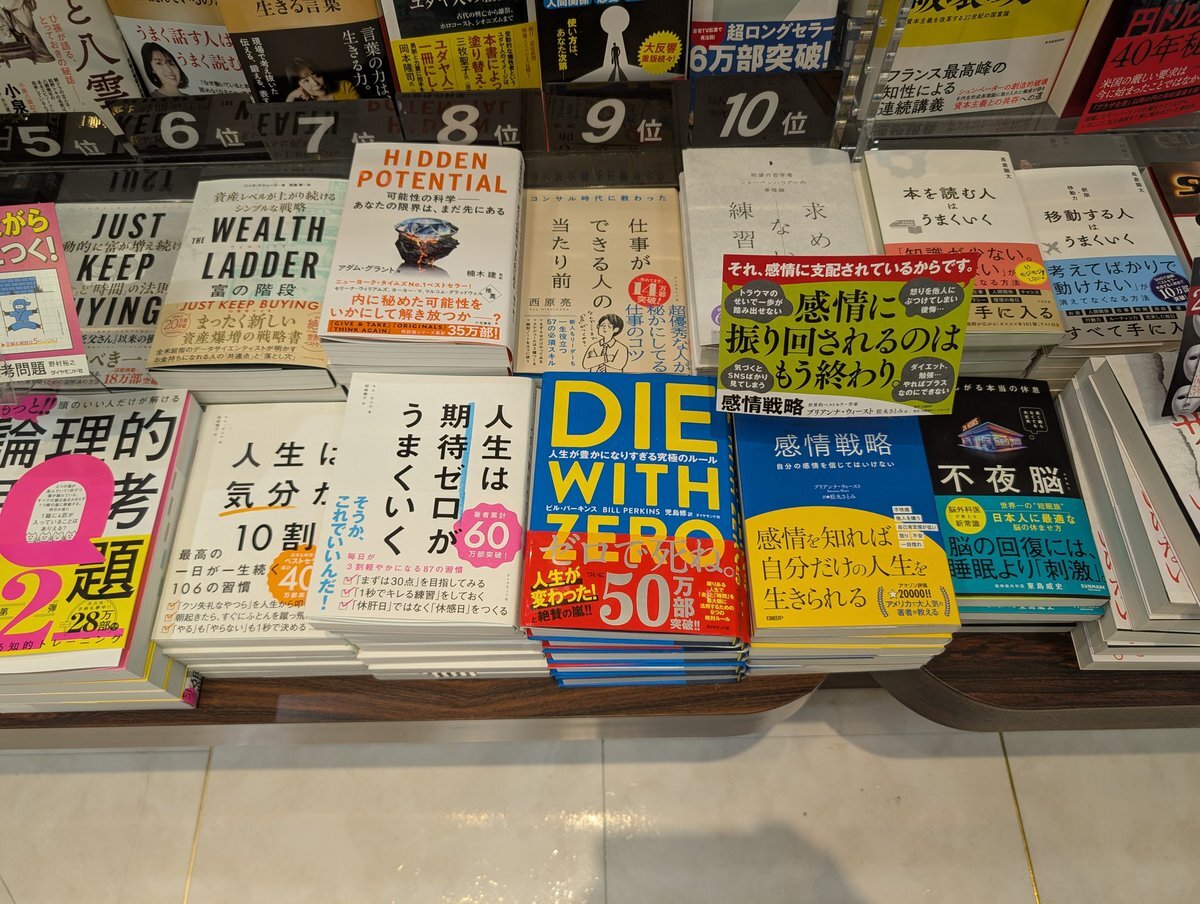 DIE WITH ZEROが50万部突破して、更にこのお店のビジネス週間ランキングで5位! 人生が豊かになりすぎる究極のルールとは… お金から価値を引き出せるうちに使うこと… 人生で一番大切なことは「思い出」を作ること… pic.x.com/6mzvFeejPJ