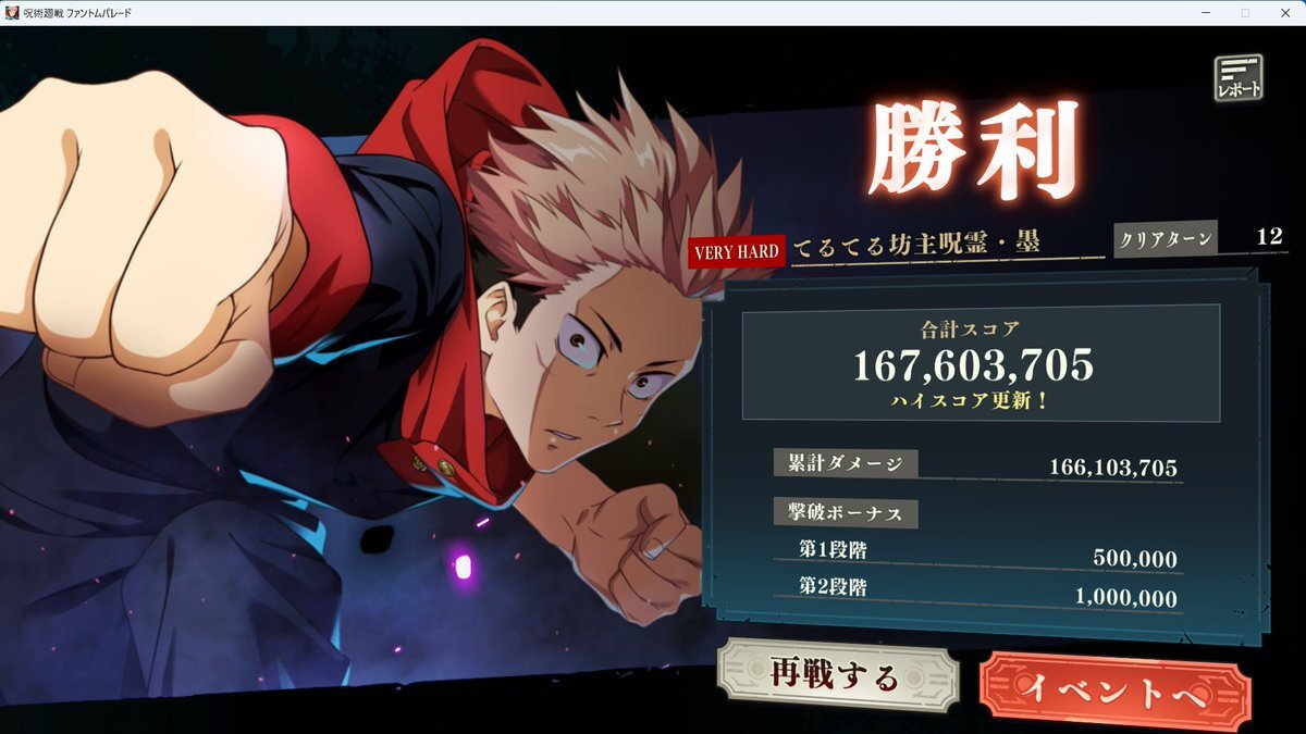 期間内に、まだまだチャレンジするけど 今日は、頑張ってこれが限界… 宿儺を入れるか、悠仁を入れるか 夜蛾学長入れるか西宮入れるか とか、色々試し中 目指せ、7000万超 #ファンパレ pic.x.com/FBKAUwX7JU