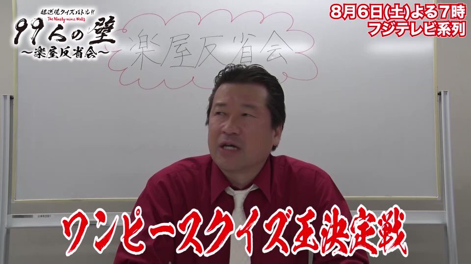 8/6(土)よる7時~ #99人の壁 #ワンピース クイズ王決定戦⚔️🔥 #ONEPIECE 名シーン🎥に #JP #北原里英 #柴田英嗣 号泣😭✨ #ウソップ #サンジ #フランキー #ジンベエ の声優陣も壁に参戦❗️ さらに #ルフィ #チョッパー #ゾロ からのクイズも💡 グランドスラム獲得者は出るのか⁉️ お楽しみに〜🌈