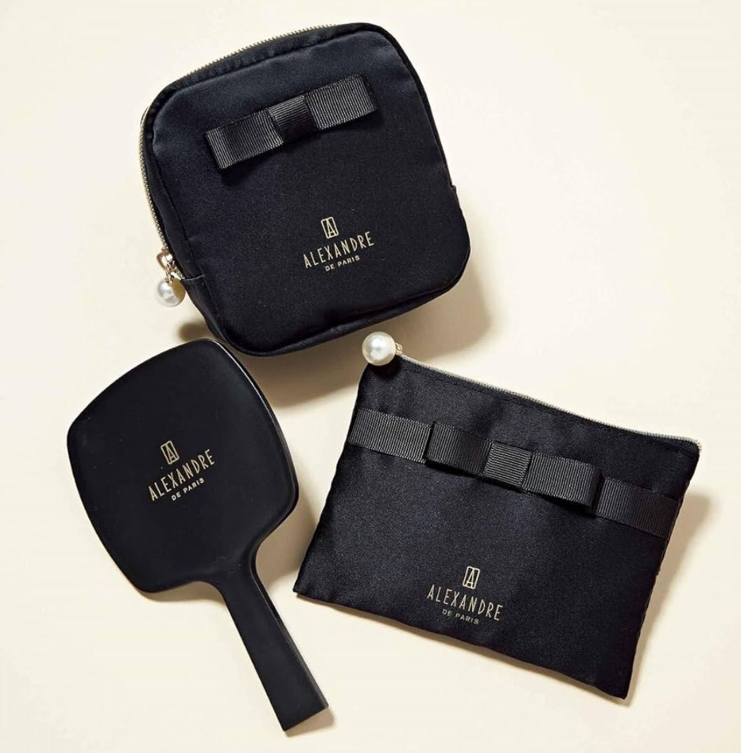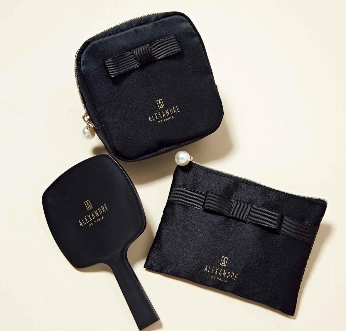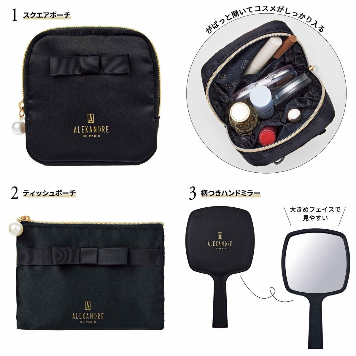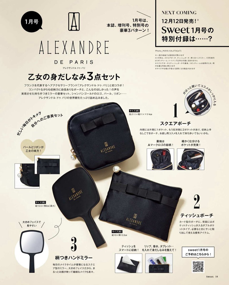 次号のsweetの付録が豪華すぎてやばい!アレクサンドルドゥパリのポーチ&ティッシュポーチ&ミラーの3点セット! ツヤのある黒地に映えるゴールドのジップやロゴ、グログランリボンやパール✨しかも内側はアレクのロゴ総柄! pic.x.com/EnBJ0sqPks