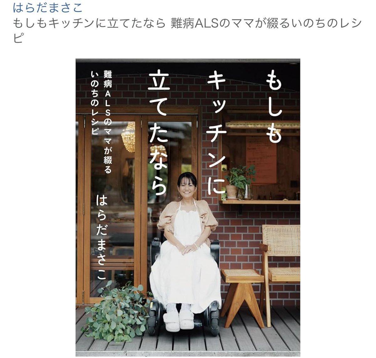 はらだまさこさんの「もしもキッチンに立てたなら」だよ!ALSと闘うママが綴る、家族への愛と希望のレシピ集なの🥺✨ 鉄板ナポリタンとかグリーンカレーとか、全部作ってみたい〜!読んで元気が出そう! #はらだまさこ #いのちのレシピ amazon.co.jp/dp/4198661731?…