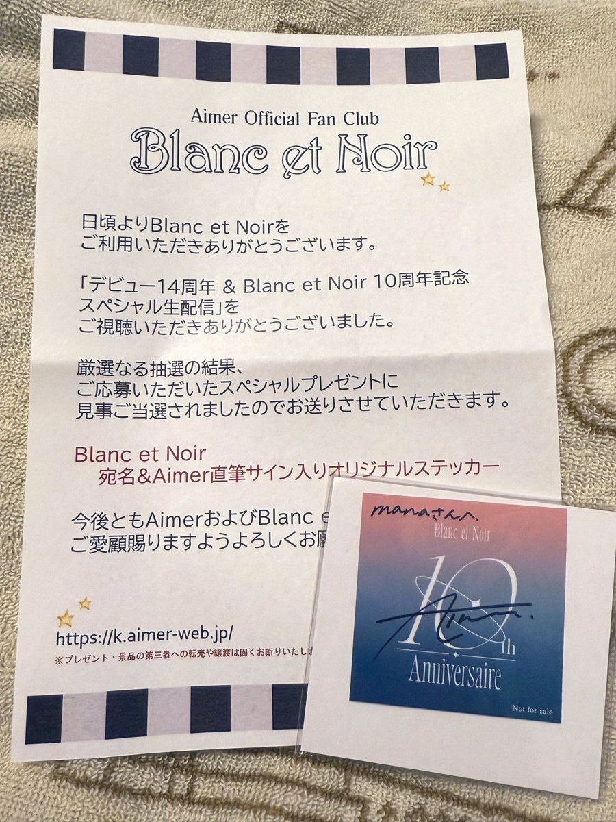 ご縁があって、Aimerさんの直筆サイン入りステッカーをいただきました🥹❤️ たぶん当選しないだろうな〜と思って、当選した場合の宛先を実家の住所のままにしていたから 母から連絡を受けて、急遽帰省して受け取りました🚃 Aimerさんが私の名前まで書いてくれたと思うと、本当に特別で愛おしい🥹❤️ pic.x.com/5f34SfhlOX