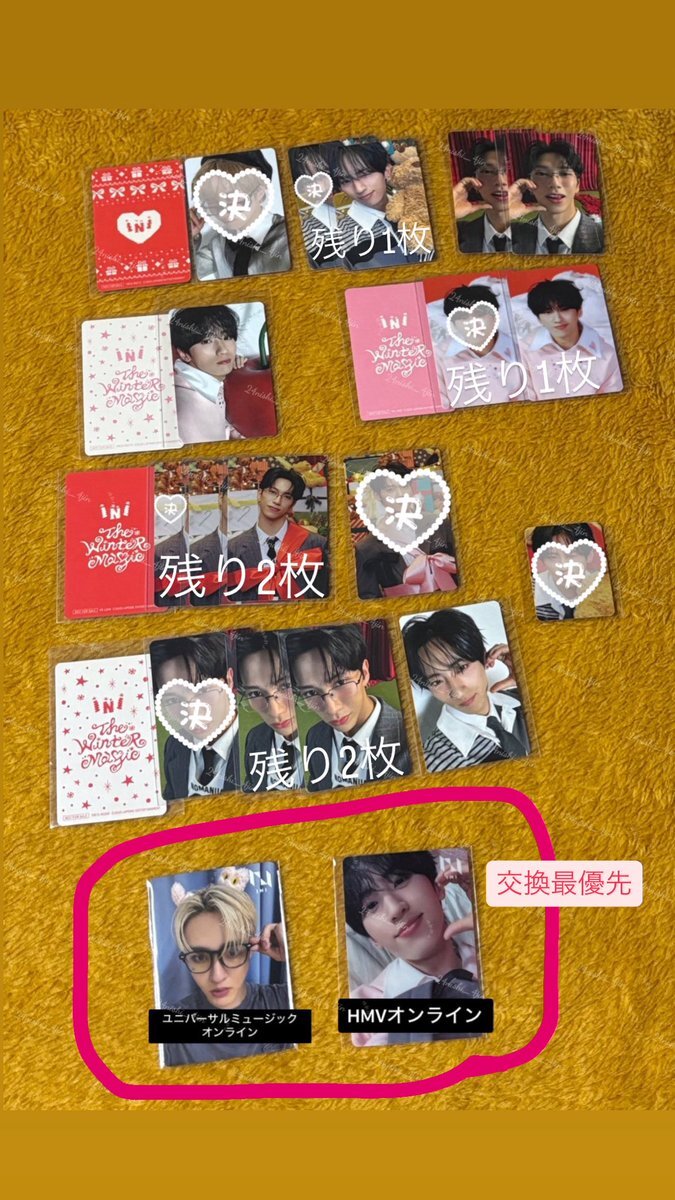 INIグッズ & トレカ 交換/買取 [譲]集合、髙塚、西、松田、池崎、尾崎 [求]西洸人、松田迅 【買取】西ラババン ⚠️詳しくはALTをご確認ください。 条件違いの方は♡のみとさせていただきます。 [取引] 郵送📮 こちらもまだ探しておりますのでお気軽にお声がけ下さい😭 #INI交換 #INI譲 #INI求 pic.x.com/Ryz2WPSjAE