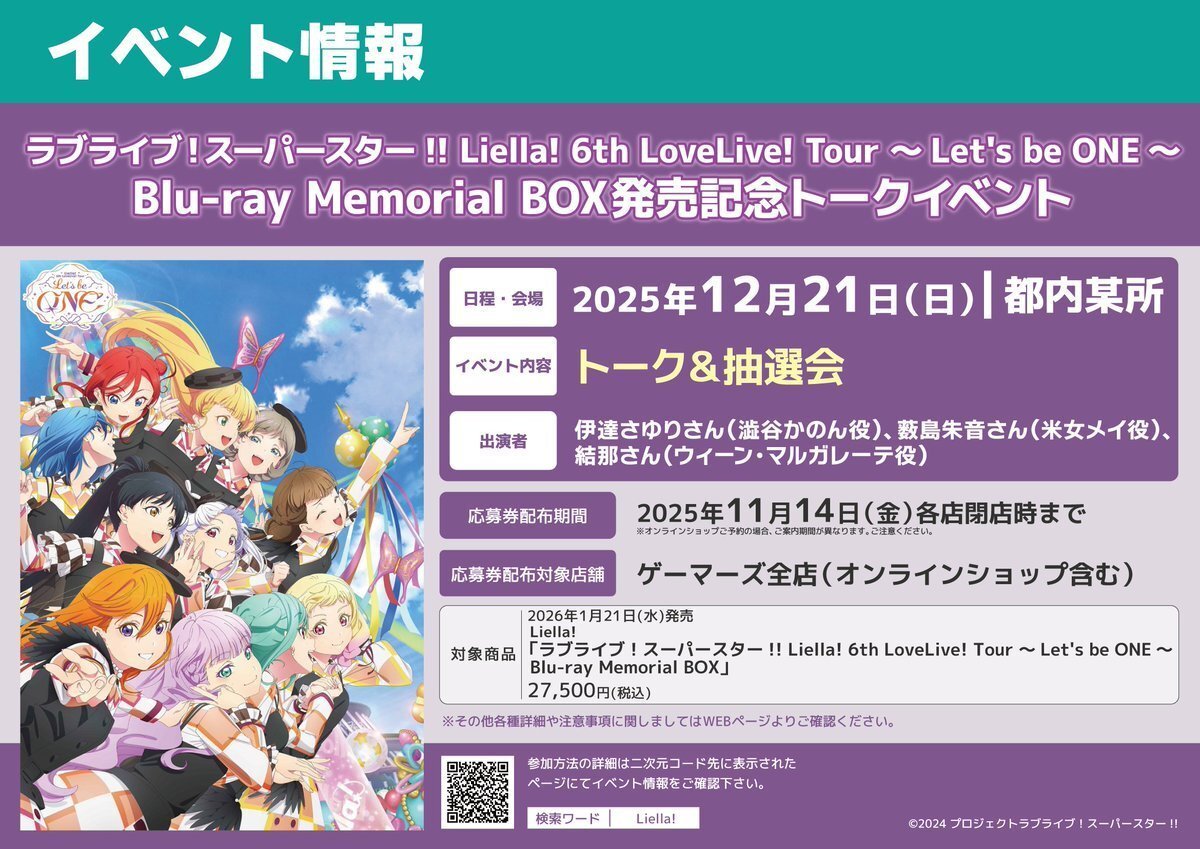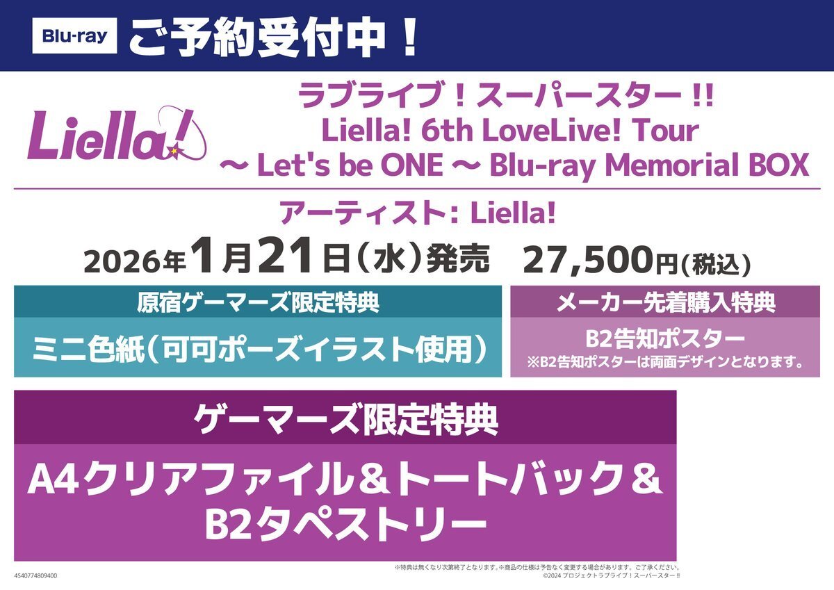 【💫BD/予約💫】 ラブライブ!スーパースター!! #Liella! 6th LoveLive! Tour~Let's be ONE~ Blu-ray Memorial BOX 💫ご予約受付中デス💫 全額内金でのご予約でイベント応募券お渡し📣 なんと💭原宿ゲーマーズで予約すると『可可ポーズイラスト使用の色紙』がつきます🐼🍨💙 #lovelive pic.x.com/R3EBQyjsSb