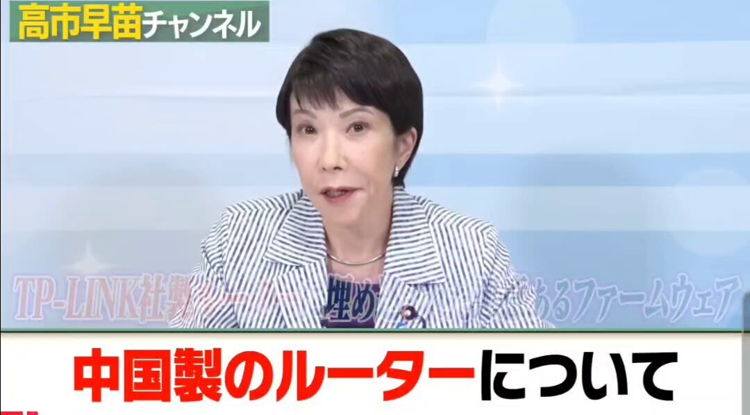 高市早苗氏🇯🇵 中.国製のルーターついて警告 中.国の国家支援型ハッカー集団Sto.rm-09.40が T.P-LINK社製ルーターなど1万6千台以上の IoTデバイスを侵害してサイバー攻撃を行った 高市総理は岸田元総理に断られた サイバーセキュリティの強化を必ず行う‼️ #だから私は高市早苗