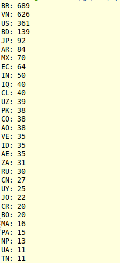 (過去イベの)貢献ポイントランキング等のページにけっこうな数のアクセスがありますが、どうやらボットネットのようです 直近3000件のアクセスを見たところ90カ国からアクセスがあります ブロックの準備は進めてるんですが、ブロックしたら仕返しでDDoS攻撃こないか不安です w 上位30位のリスト pic.x.com/wLdJm30hhY