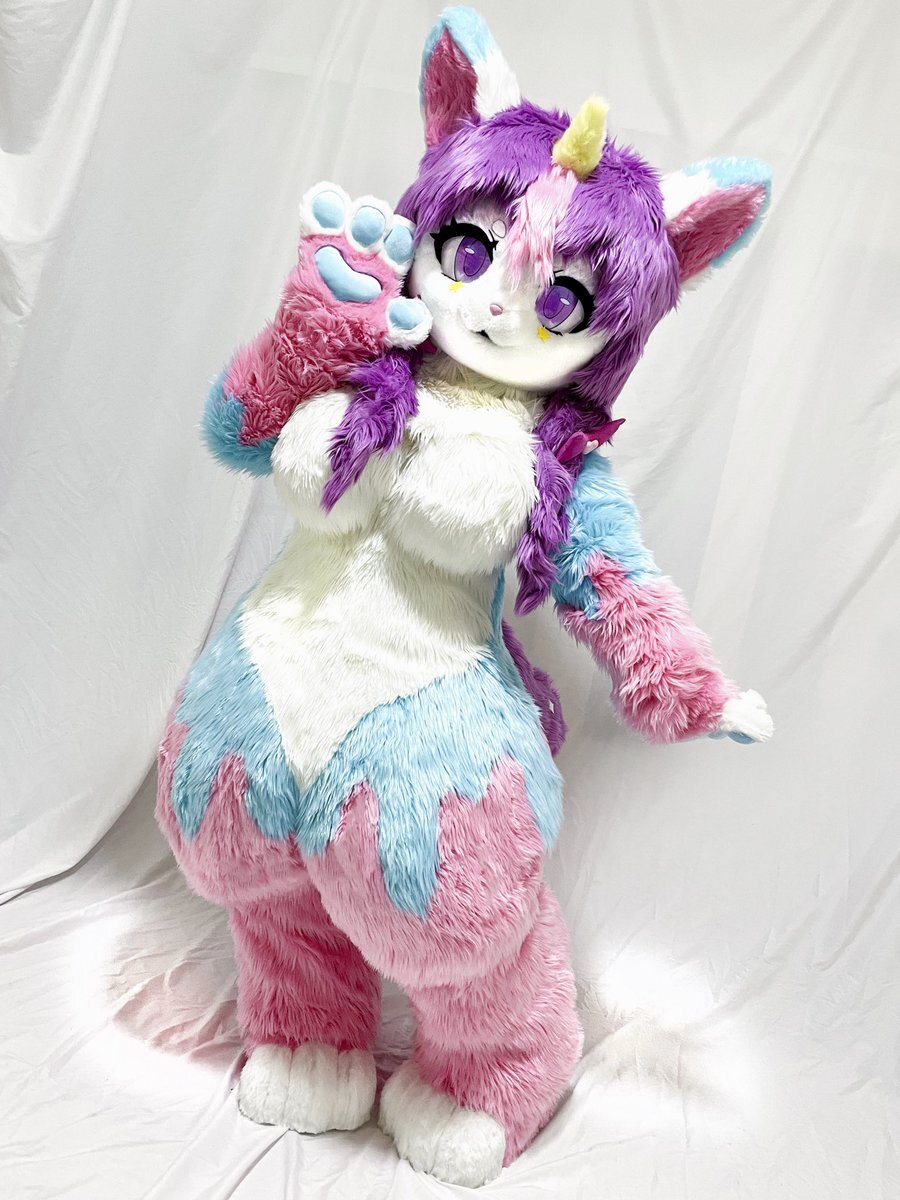 依頼品のユニコーンの女の子ルネスタが完成しました🦄 ちょこんと生えた角、どろっとした雰囲気の模様ですがパステル調のカラーリングにより毒々しいどころかより可愛く仕上がりました😸 ハート肉球や尻尾の星模様もチャームポイントですね💕 ご依頼ありがとうございました! #FFP #FancyFurPierrot pic.x.com/M5TKZQZyxu