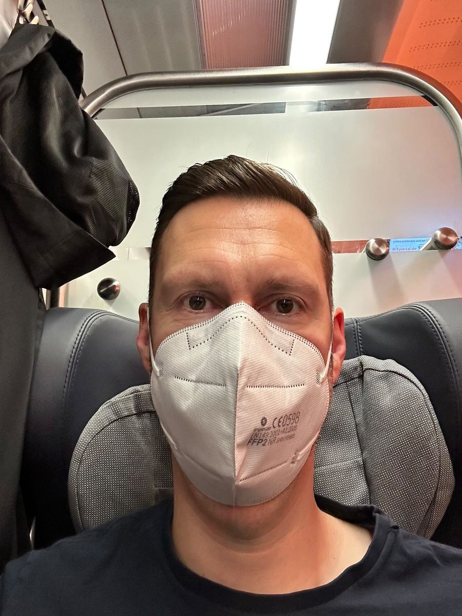 「おい!会社の会議に出かけるんだ…いつものようにFFP2マスクでな。今朝は自分でコロナ検査もしたし、同僚にも同じようにするよう勧めたら、みんなやってくれた!今ドイツではコロナ、インフルエンザ、RSVが流行り始めている。」—電車の中のセバスチャン・K。#MaskTogetherAmerica x.com/TogetherWeMask…