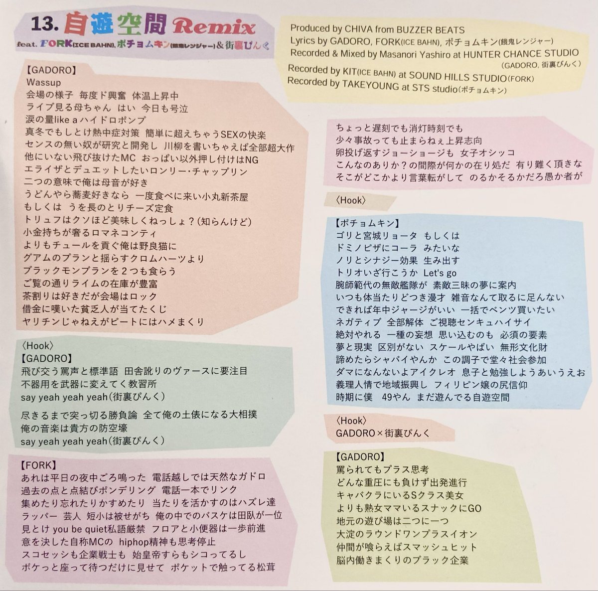 GADORO氏のニューアルバム「HOME」の楽曲の韻解説。13曲目は韻者2人を招いた「自遊空間Remix」。多分アルバムで歌詞最長なはず。なので解説もツリーで続きます。 GADORO - 自遊空間 Remix feat. FORK, ポチョムキン & 街裏ぴんく (Pro. CHIVA from BUZZER B... youtu.be/5TWQD4x4avY?si… @YouTubeより x.com/q_quark/status…
