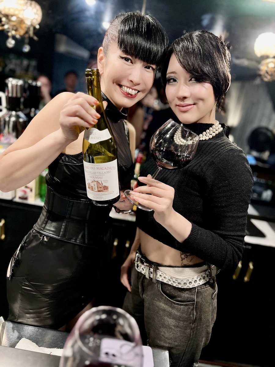 本日の #スナックゆみこ は京都よりメイサ殿も。黒髪、新鮮でした! さくら×メイサは夏のマトリカ以来。 ボジョレーヌーヴォー頂いたり、差し入れ頂いたり。 今夜もありがとうございました★ 次回スナック営業は 11/26(水)! frameさんとのコラボdayです〜レアシフト、ゆまとお待ちしてます(^^) pic.x.com/mfygI4uDWi