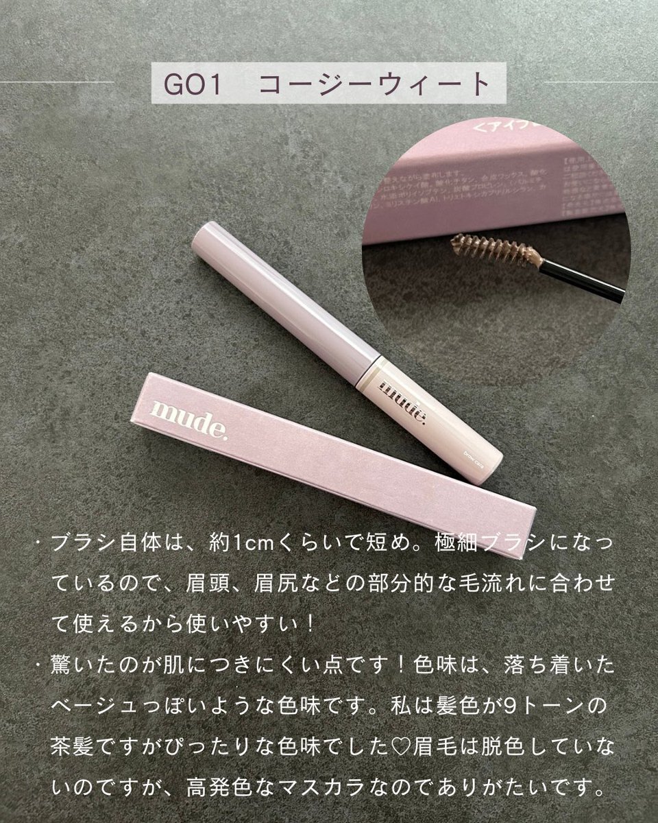 【GO1 コージーウィート】 ・ブラシ自体は、約1cmくらいで短め。 ・極細ブラシになっているので、眉頭、眉尻などの部分的な毛流れに合わせて使えるから使いやすい! ・驚いたのが、肌につきにくい点です! pic.x.com/7PuHFYxRf8