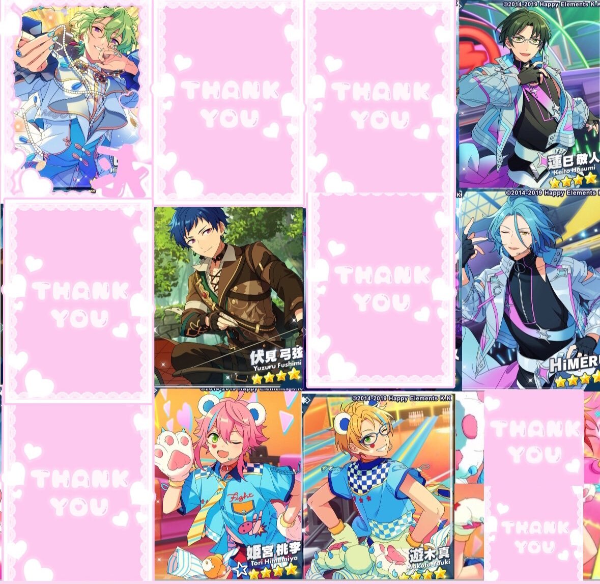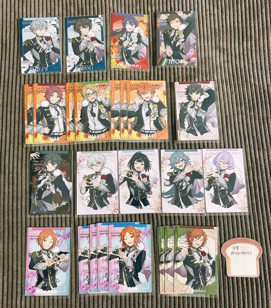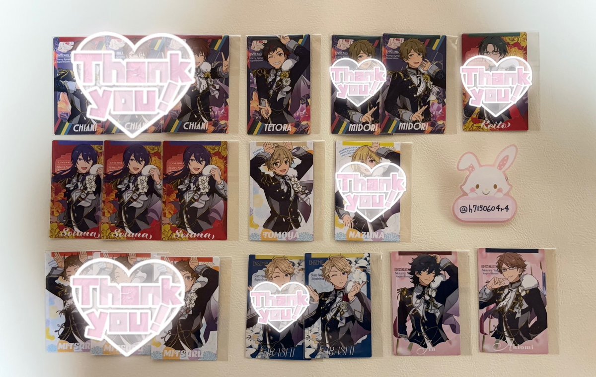 【交換】あんスタ スタフォニ 4th カードコレクション 譲→泉、凛月、颯馬、鉄虎、真緒2、真2、スバル3、陣、みか、カンナ、エス、ライカ、ユメ、ひなた、ゆうた4、斑3 求→茨、日和、一彩>HiMERU 、こはく、弓弦 郵送での交換希望です。 検索からもお気軽にお声がけください。 pic.x.com/Dzccgae1HT