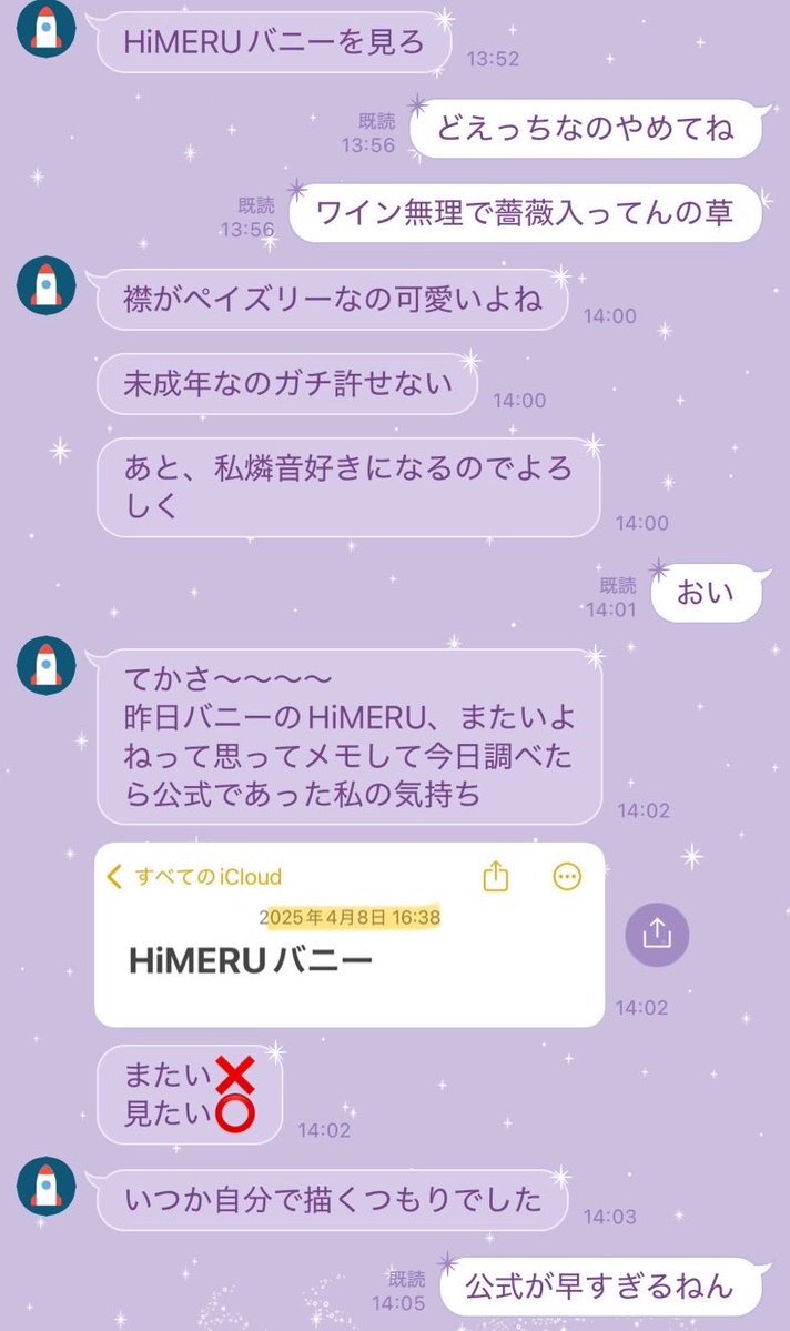 こいつとのトーク履歴でHiMERUって検索するとおもろいのしか出てこなくて楽しい‼️そしてスタ始めて数日でHiMERUバニー見たくなった上に公式には既に存在してたの草 pic.x.com/wvAgcg7R7R