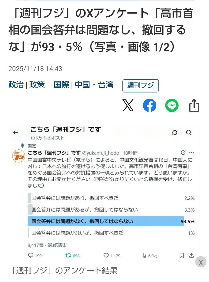 返信先:@Psychedelic_sky他1人#小林よしのり が #中国 と戦争になったら高市支持者を徴兵すりゃいいみたいなこと言ってたが、このアンケで高市支持した奴とか@sharenewsjapan1のポストにいいねしてる4.3万人とか、その気になればログのIPアドレスから身元特定できるし有事になれば徴兵捗りそう🙄 x.com/Psychedelic_sk… #高市早苗
