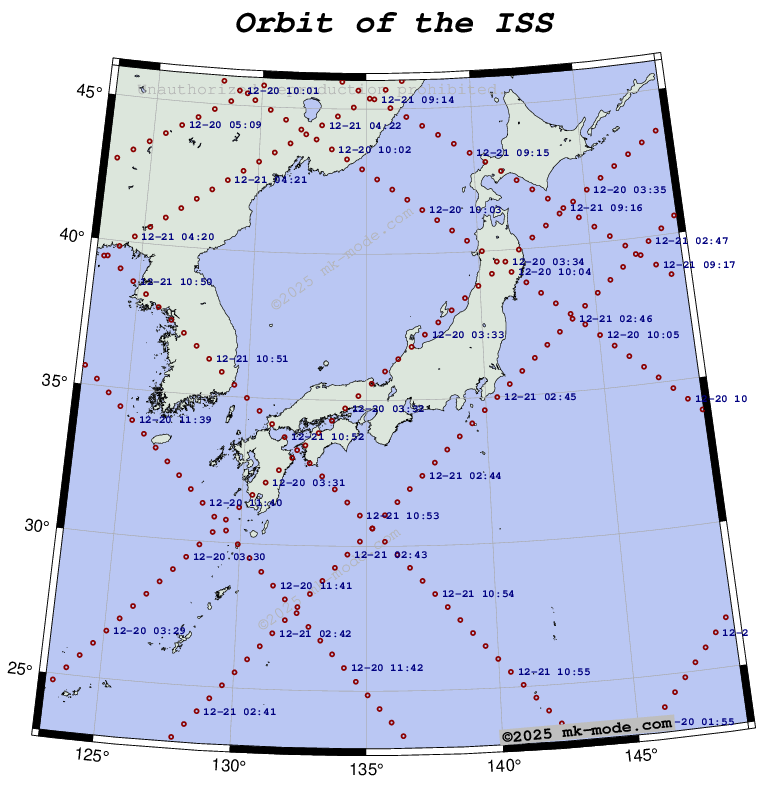 【#ISS #きぼう 進路予想】 2025-12-20 00:00:00.000 〜 ※10秒間隔、48時間 ※個人による計算のため、実際の進路と差異がある可能性あり mk-mode.com/rails/iss pic.x.com/z9PdTxIFEx