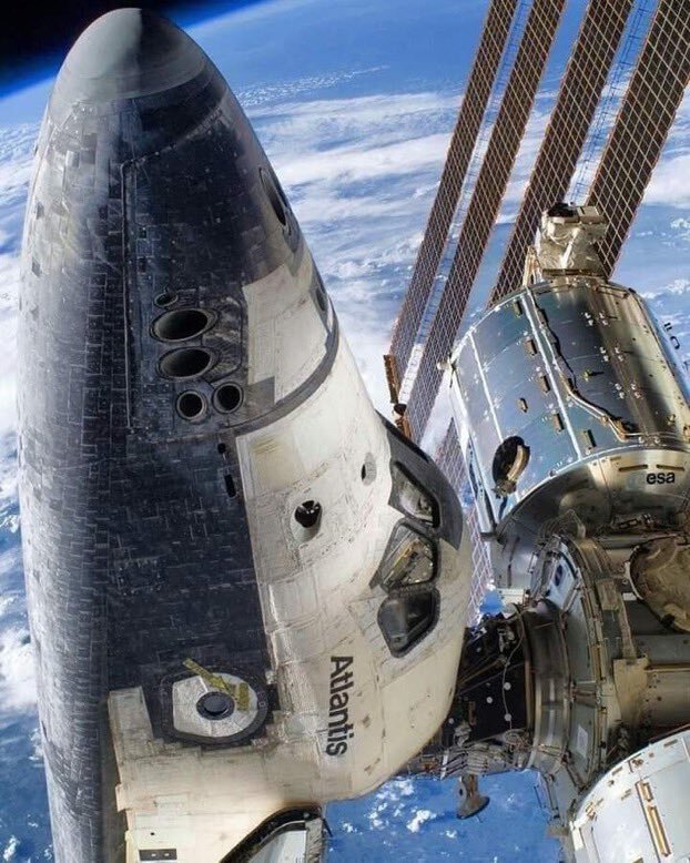 Atlantis docked on the ISS This photo was taken on May 17, 2010 by astronaut Garrett Reisman on the STS-132 mission, during extravehicular activity. Credit: NASA/ @astro_g_dogg