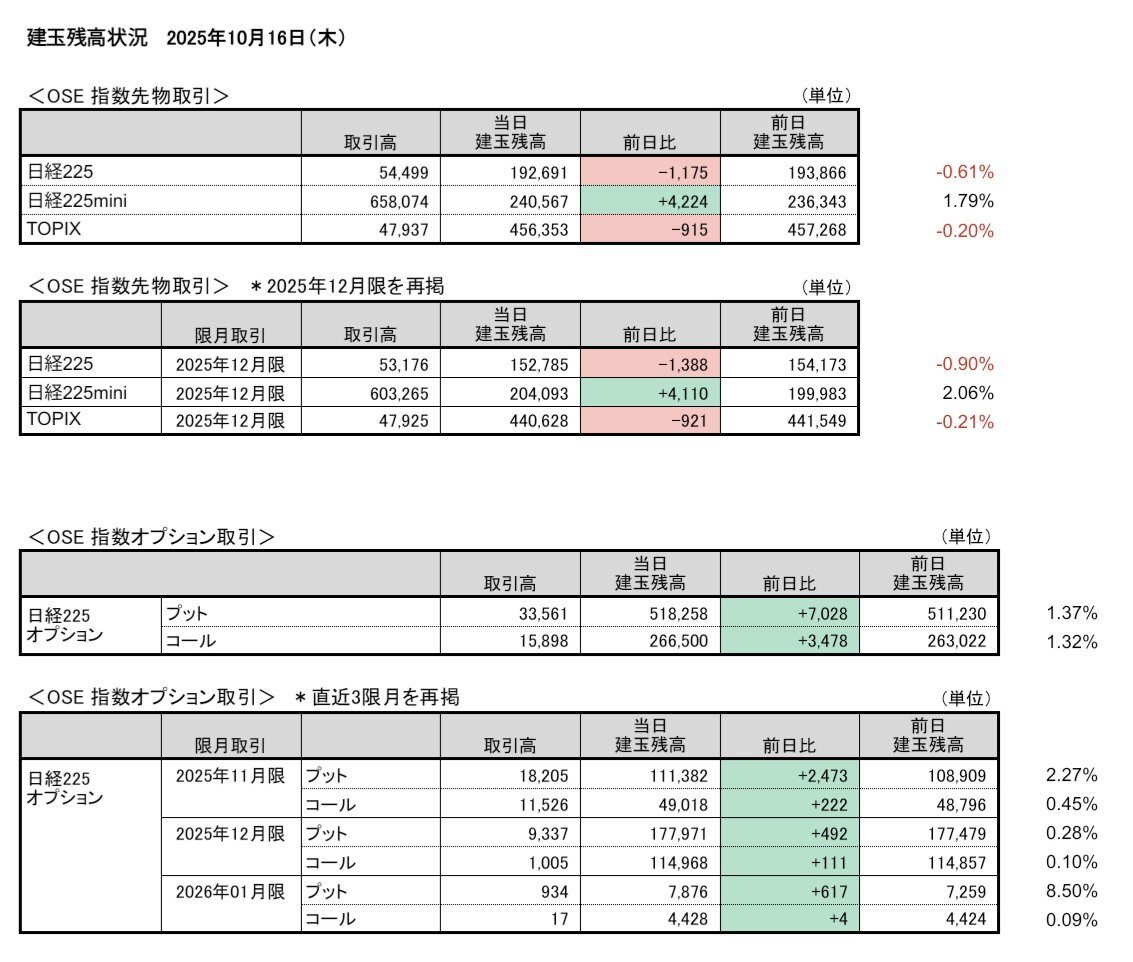 【業務連絡】 JPXデリバティブ建玉残高状況日次データ更新の件 ①日経225オプション取引高(2025/10/16) (1/4) pic.x.com/tH5RpcEjqj