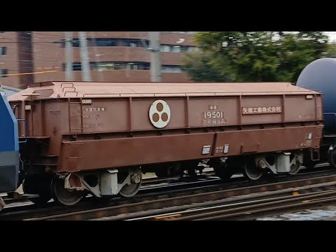【赤ホキ19501 川崎車両所入場回送(全検)】JR貨物EH200形5号機+国鉄ホキ9500形貨車1両+タキ5両が南松本駅を発車するシーン(5460レ・高A234・石油返空)2025.10.31 youtu.be/4fxtVJNHts8