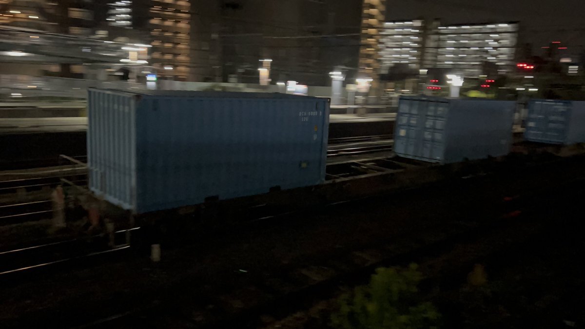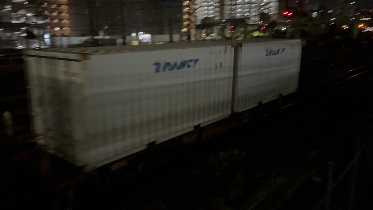 2025.11.3日*東淀川駅🚉3:04 *不明貨物*1094レ? * *EF210-運転確認/コキ8両コンテナ少な目 トランシーコンテナ×3個 最後尾コキ200 #EF210 #JR貨物 #貨物列車 #コンテナ列車 pic.x.com/QpF8I2Hx67