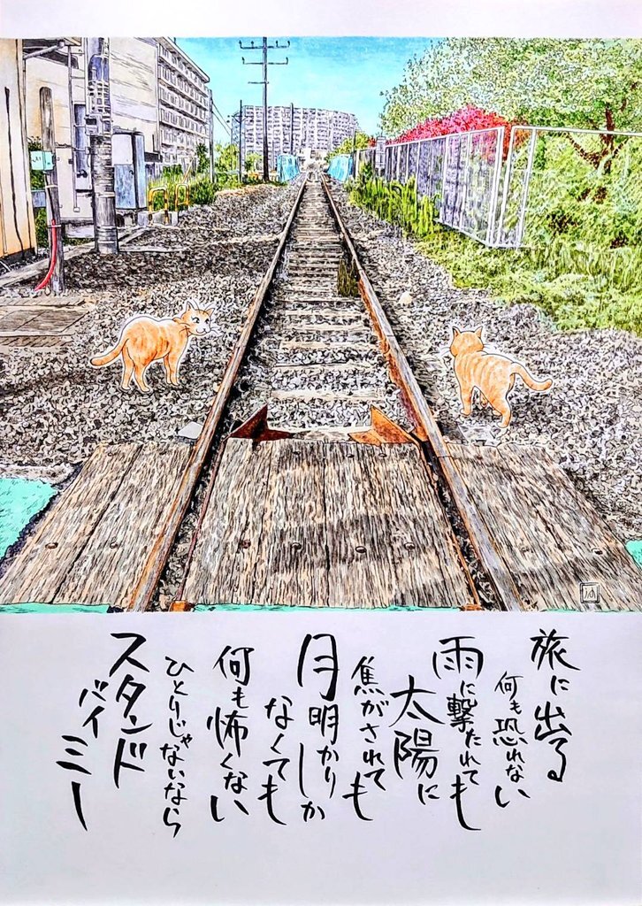 沖山潤の気ままに風景漫画⑦ 江東区南砂線路公園。 JR貨物の越中島支線の線路脇が公園になってます。ほとんど列車は走りませんが、廃線ではないので人はこの線路に立ち入れません。スタンドバイミーごっこすると鉄橋で機関車に追いかけられるのでご遠慮願います😆 #イラスト #線路 #猫の居る暮らし pic.x.com/k1AAOokWn9