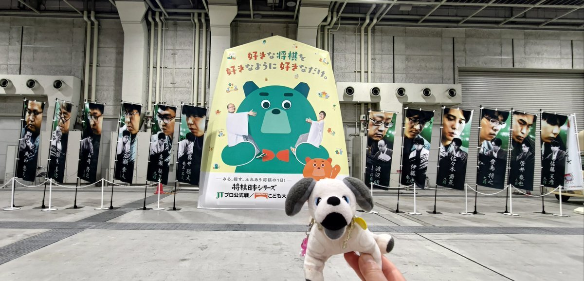 矢吉くん、JT杯 将棋日本シリーズに いったよ。棋士の みなさんの のぼり。コシノツヨシくん。おっきな つくね。しょうり したら もらえる 1ねんぶんの パックごはん。たいきょくが はじまる まえ から わくわく たのしそうだね。 pic.x.com/BAD2ugX9yX
