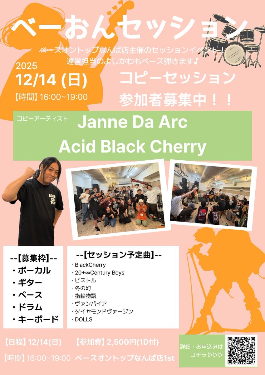 【なんば店セッションイベント】 ベースオントップなんば店のスタッフ吉川Presents! セッションイベント第6弾が解禁! Acid Black Cherry / Janne Da Arcセッションイベントが開催決定しました♫ 定番どころから少しコアな曲までそろえました! 参加申し込みはこちら!↓ forms.gle/CbUTVSLq4Rkh4z… pic.x.com/5L0FTbTp6o